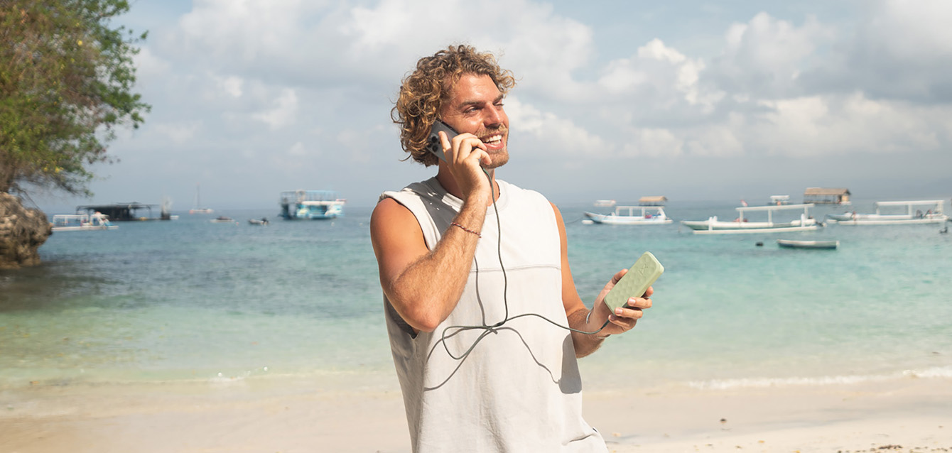 Bring your own soundtrack. Whether you want background music at your hotel, podcasts in your room, or tunes at your beach spot, this rugged little speaker delivers. Waterproof, durable, and bold in sound.