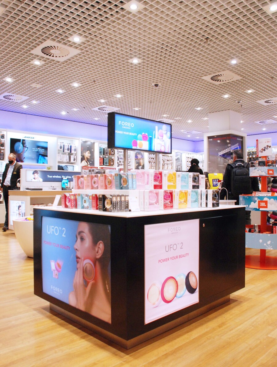 In the store, travelers can find inspiring FOREO branded tables and a fun bathtub full of colorful balls, including gifts for the lucky ones who manage to find them from the bathtub.