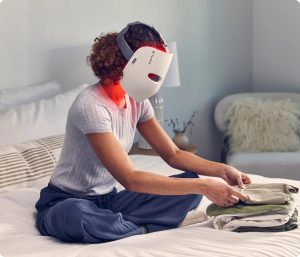 A facial wellness upgrade. This cordless LED mask uses red, infrared and blue light plus gentle massage to improve tone and radiance – ideal when you’ve done a long flight or late meeting.